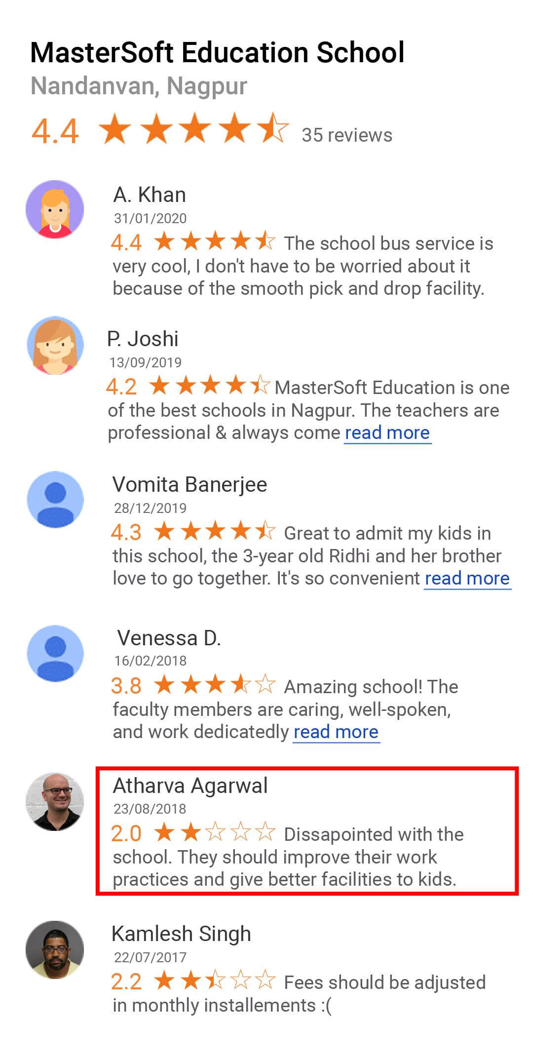 A genuinely annoyed parent or student needs to be handled with care and empathy. Don’t argue online. Don’t get personal. Don’t ignore. Don’t patronize. Thank the parent or student for their feedback. Assure the reviewer that you will look into the issue (without sounding like an automated message)! Suggest that the reviewer contact you personally to resolve the issue, by calling or direct messaging (DM). If, after looking into the issue, you find that your institution is indeed at fault, take responsibility. It is not a bad strategy to publicly acknowledge your fault. It also makes good “business sense” to publicly mention the steps taken to correct the mistake.