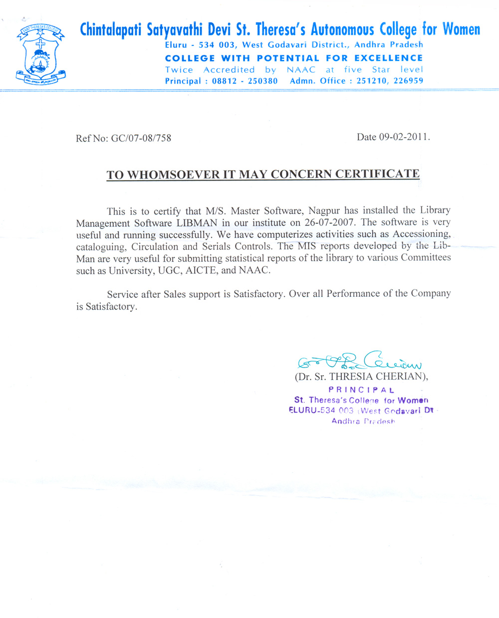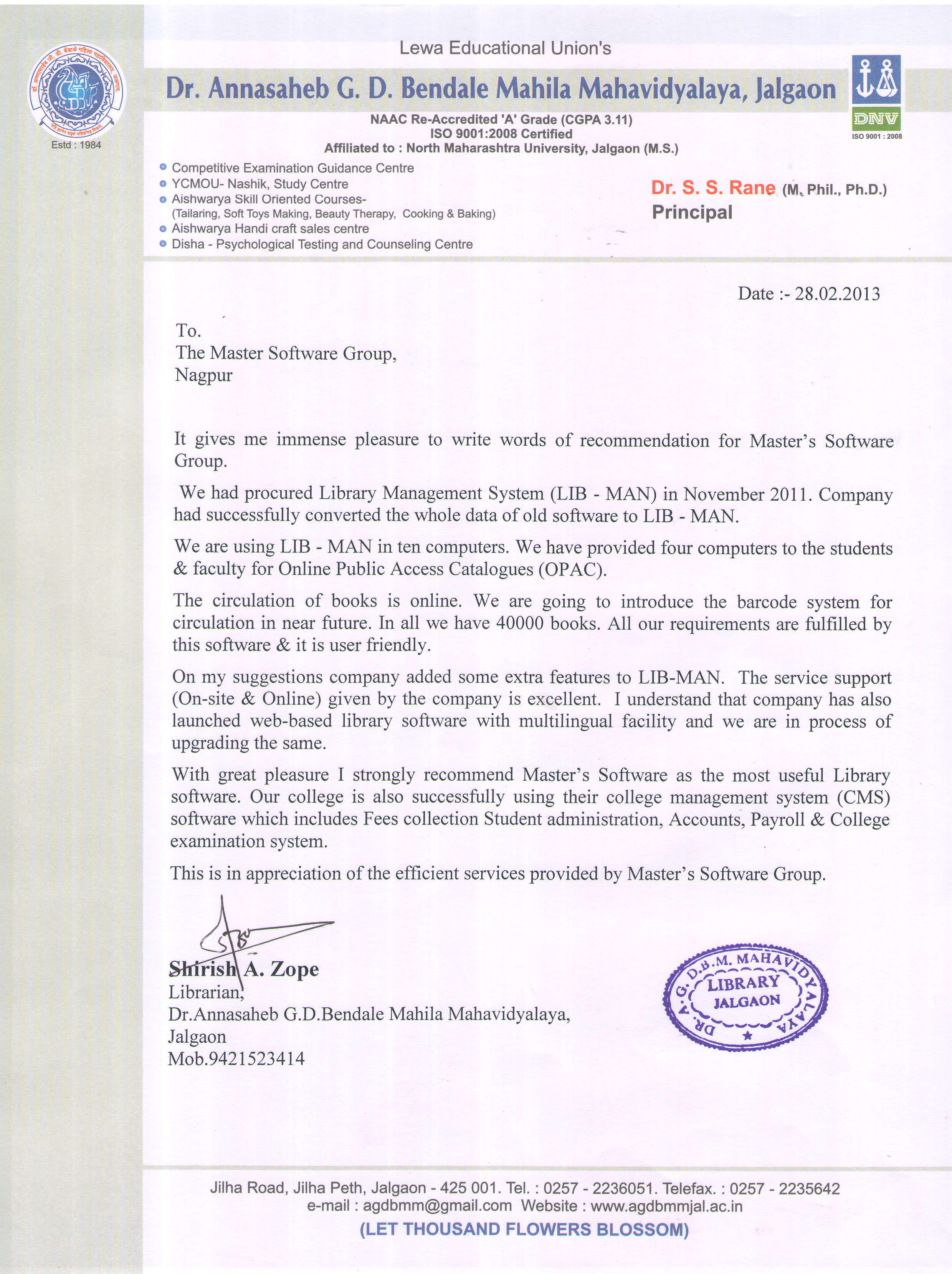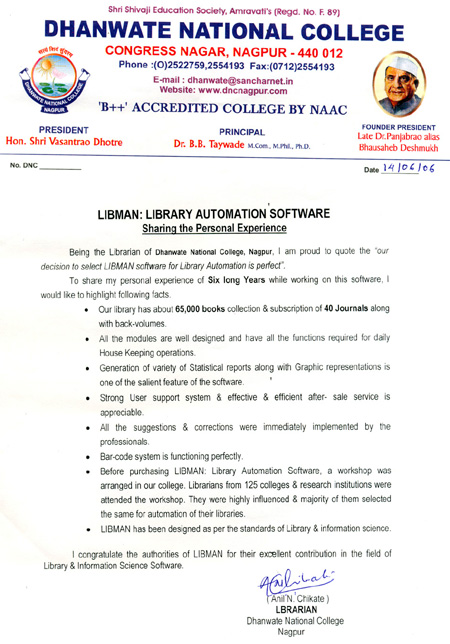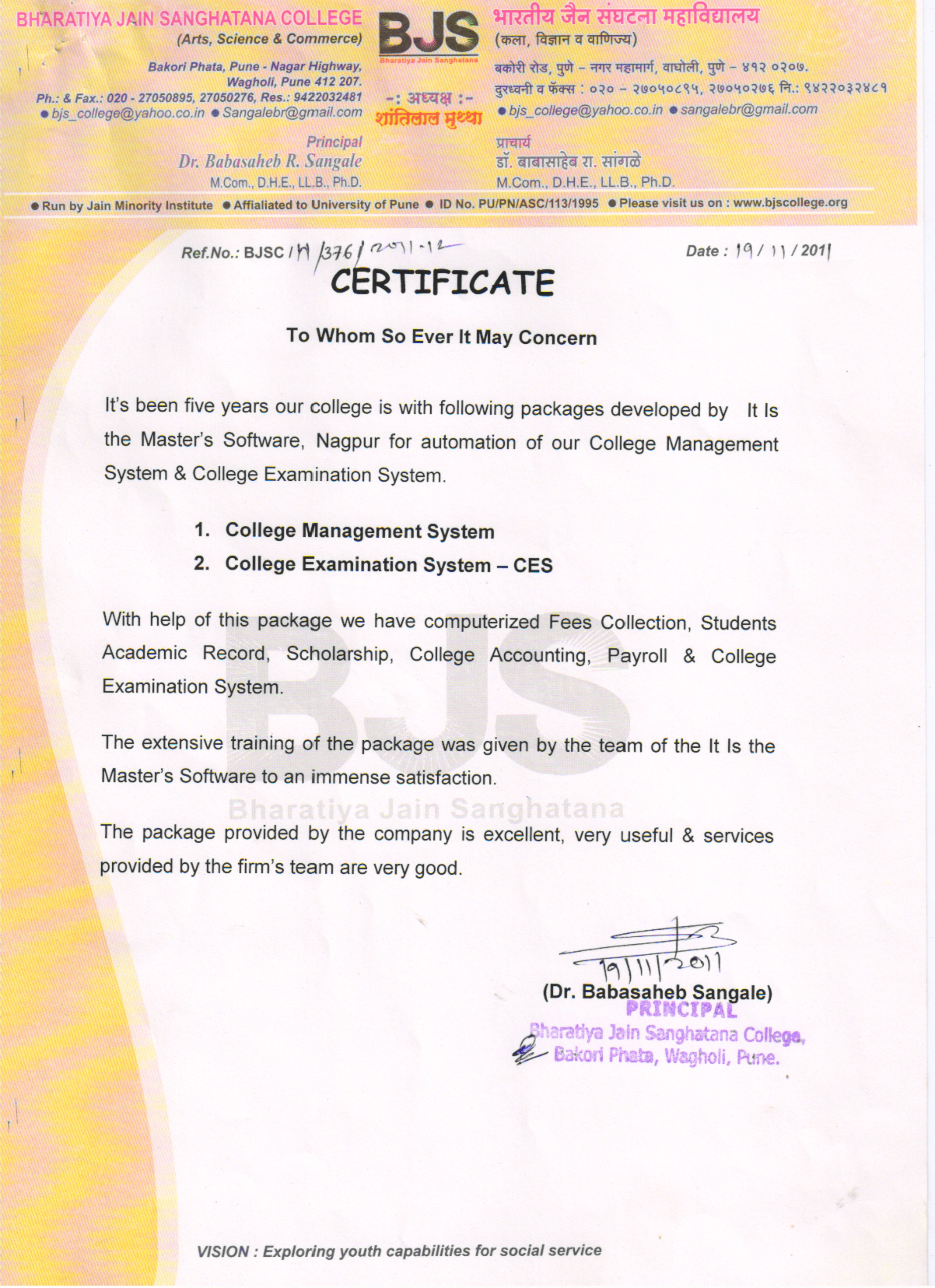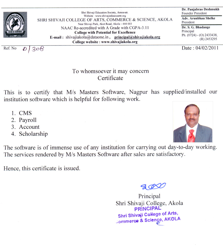The integrated MIS was customized to match the functional requirement fo the institute. The MIS is under AMC & is maintained by the developer company It is the Master's Software, Nagpur. Their services during development & on-going AMC are satisfactory.
